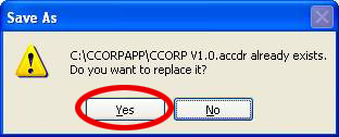 select CCORP V1.0 in File name (C:/CCORPAPP or the location where the original